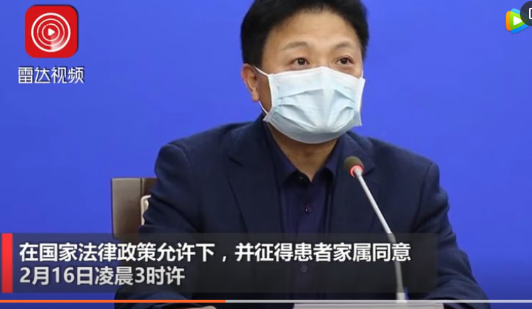 • 突破!全国第一例、第二例由遗体解剖获得的新冠肺炎病理今日被送检 ( 点击上面播放视频,广告后即播放! ) 据央视新闻消息,在国家法律政策允许下,并征得患者家属同意,2月16日凌晨3时许,全国第1例新冠肺炎逝世患者的遗体解剖工作在武汉金银潭医院完成,并成功拿到新冠肺炎病理。在同……
